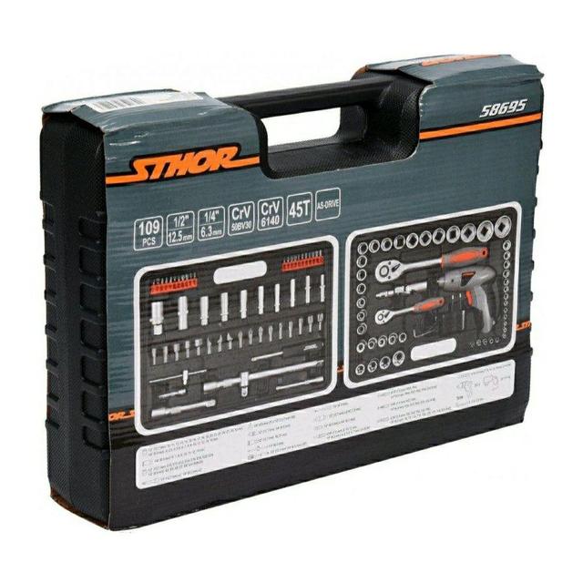 Набір інструментів STHOR — це професійний ручний інструмент, необхідний для роботи вдома, на СТО (автомастерських, автосервісах) і на виробництві. Більшість інструментів виготовлені з міцної сталі. Набори інструментів STHOR використовуються під час виконання різних типів робіт. Для зручності користування інструменти зібрані в кейс.